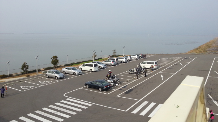 潮受け堤防 左側の内海側は湖のような感じがする