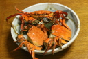 ○ ズガニの茹で上げ(食べ方のコーナーの写真) ○ ブリの切り身 小サイズ塩焼き ○ ワケギとヒイカのぬた和え(上の写真左) ○ モロッコインゲンとひろうずの炊き合わせ(上の写真右) ○ 冷ややっこに釜揚げしらす添え(ポン酢) ○ 松茸ご飯 ○ 漬け物(和泉なすのぬか漬け) ○ ビール一缶、麦焼酎1合 |